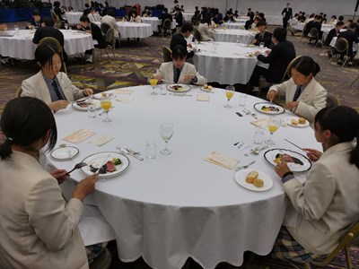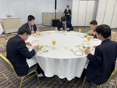 その後、生徒たちは川越プリンスホテルで、テーブルマナー講習を行いました。普段とは違う雰囲気での食事で、はじめは緊張感した面持ちの生徒たちも、後半は雰囲気に慣れ柔らかい表情が見られるようになり、本格的な料理を楽しみながら、しっかりと欧米における食事のマナーを学びました。