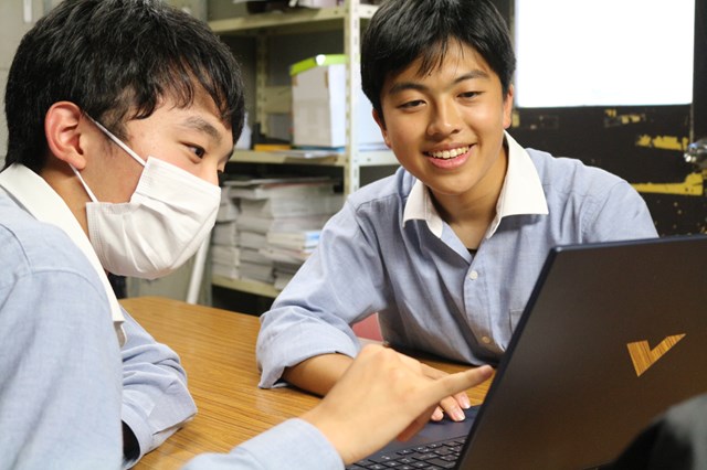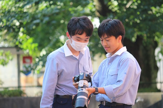 表野:中学の頃から写真やカメラに興味がありました。文理中学では、友だちに頼まれて動画の撮影をしたり、編集したりしていました。その頃から、高校生の先輩たちが行事などで撮影している姿を見て、カッコいいなと憧れていました。