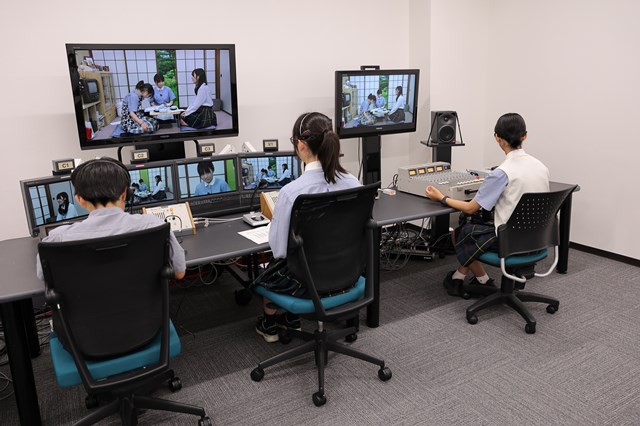 ドラマ制作ワークショップでは、役者・ディレクター・カメラマン・スイッチャーなどに分かれて、本物の機材を使用した収録体験を行うことができました。