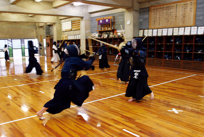 私たち剣道部は、「剣の理法の修練による人間形成」を目的に文武両道を心がけ、日々剣道に勉強に熱心にとりくんでいます。日頃の稽古では、基本となる技能の修得とともに、試合で活躍できる練習を行ってます。初心者で中学から始めた人も、大会では県大会出場など数々の成績を残してきました。これからも、より多くの成果があげられるように日々がんばっています。