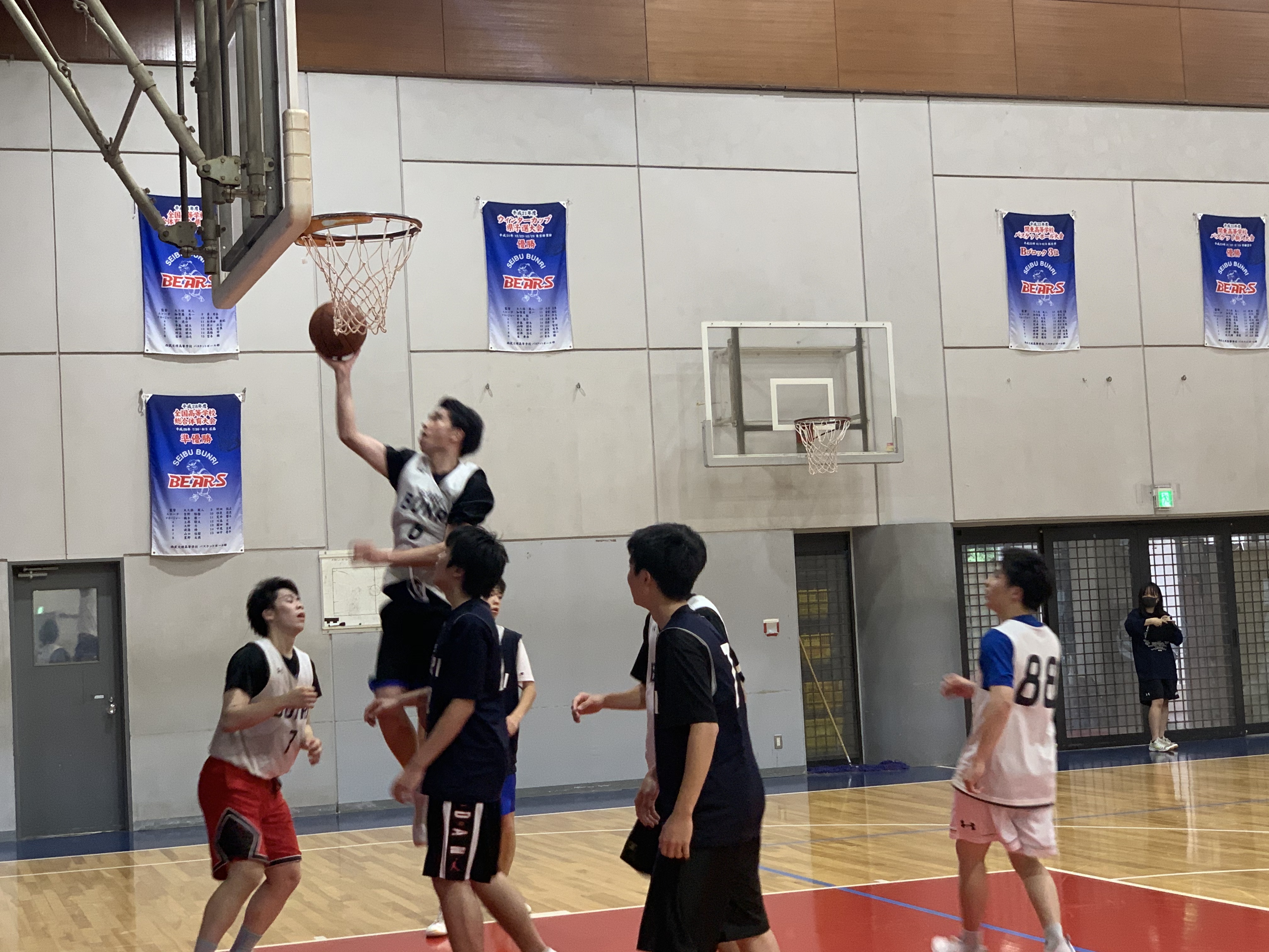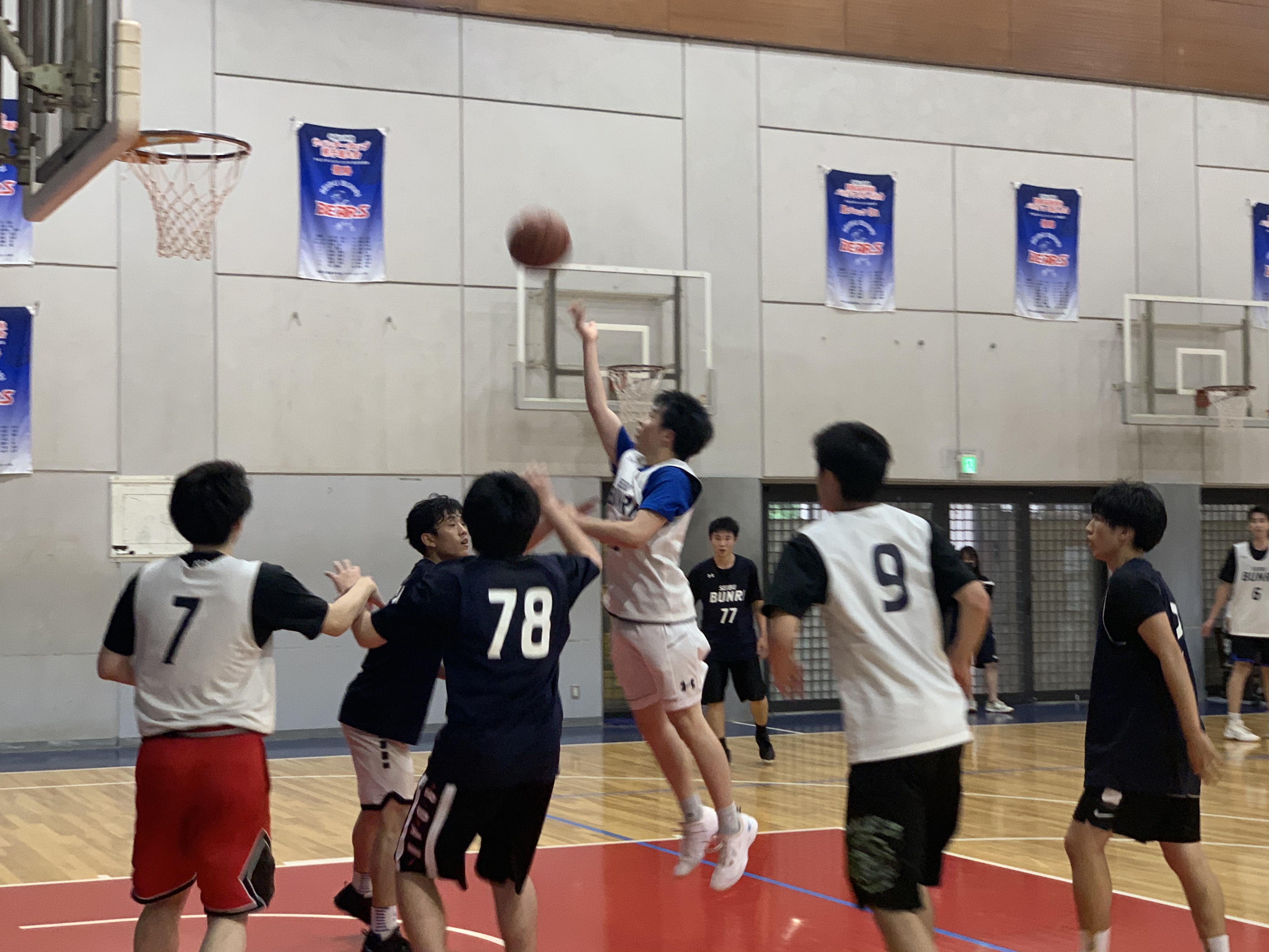 男子バスケットボール部では、「闘志・気迫・妥協なき挑戦!!」をモットーに全国大会出場を目指して日々練習に励んでいます。日々の練習では常に「ゲームライク」を意識して個々の能力、チームとしての攻撃力・守備力の向上を図っています。週末には練習試合を行い、日々の練習の成果の確認をするとともに新たな課題を発見して次の練習へと生かしています。時には西武文理大学男子バスケットボール部に協力していただき、平日にも練習試合を行うこともあります。