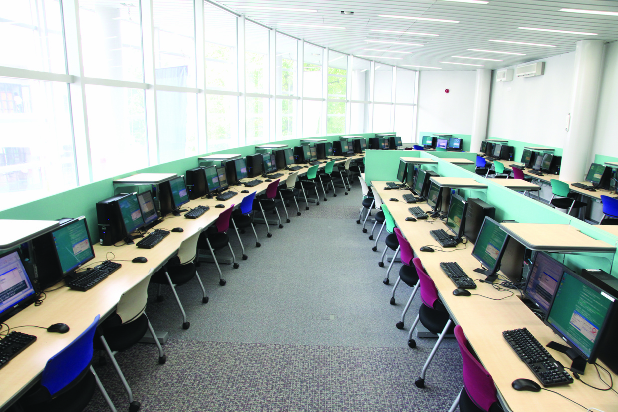 本校では個人別の情報端末機器として、中学生にはiPad、高校生にはChromebookを持たせています。一人一人が授業や家庭学習で活用しています。また、情報教室ではPCも完備しています。生徒は単に情報機器の使い方を学ぶのではなく、課題や目的に応じた情報を収集し、適切に活用・伝達する力の育成を目指して取り組んでいます。
