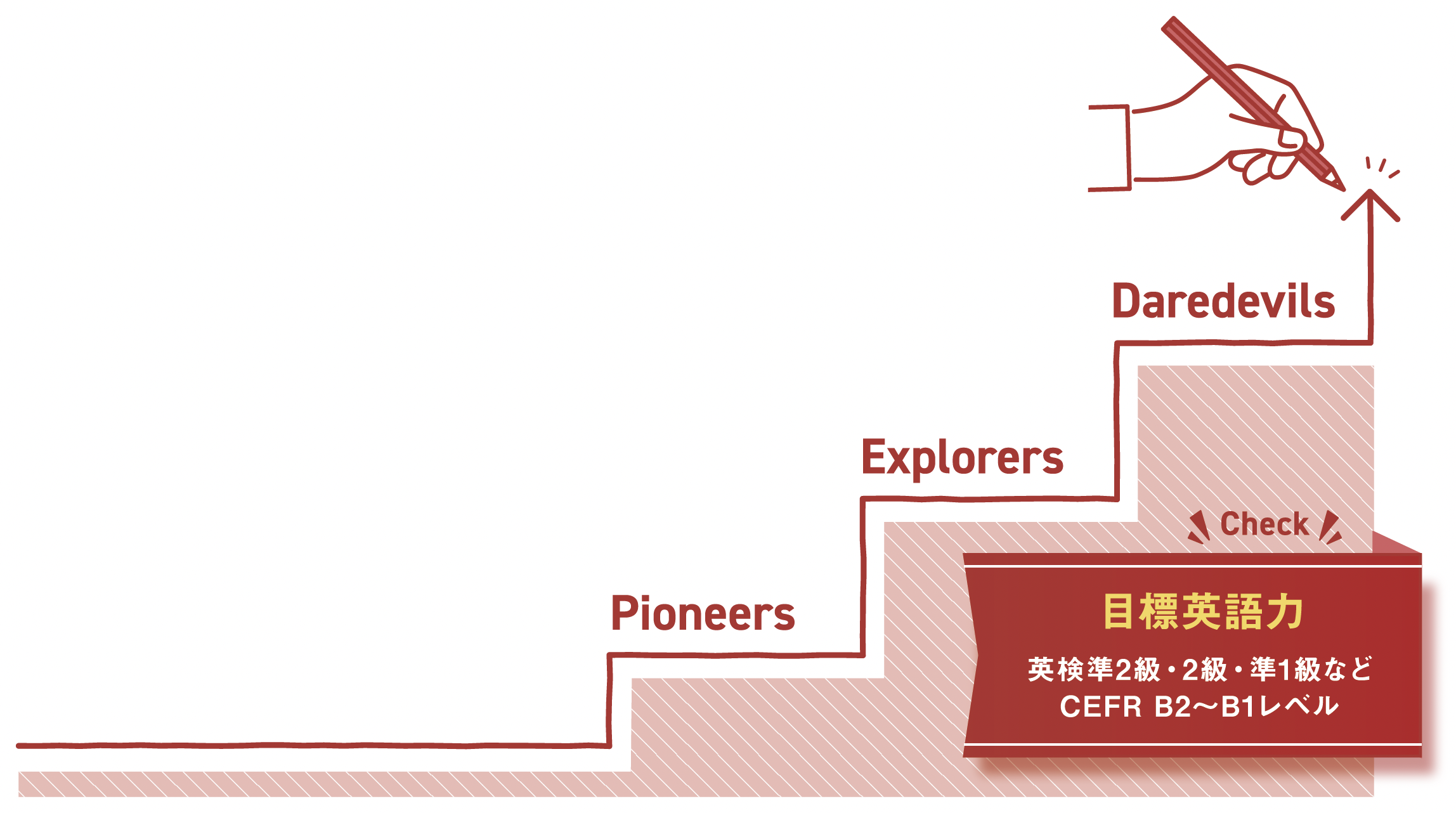 英語力の特に高い生徒や、英語学習に高いモチベーションを持つ生徒向けに設計されたクラスです。授業の80%はALL English授業、20%は文法授業を実施します。教科書の習得にとどまらず、英語を使って様々なPBL(課外解決型学習)にチャレンジします。