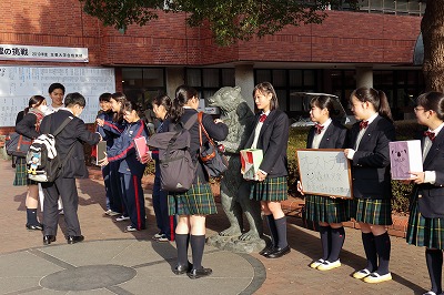 この会の大きな目的は、多くの人にこの状況を知っていただき、一人ひとりが何かを感じ考えてもらい、できることであれば行動してもらうことです。英語科の2年生の中には、少しでも心に寄り添えればと、語学研修の際にお世話になったホストファミリーにメールを送った人もいました。また雨が降るようにと願う人もいました。そして募金活動をしたいと言う人も現れました。募金については、ネット上のものはクレジットカードを利用するものが多く、高校生には利用ができません。そこで私たちは学内での募金活動が行えるように、現金で募金を受け取ってくれる団体を探しました。その結果、上野動物園と在日オーストラリア・ニュージーランド商工会議所が受け取ってくれることがわかりました。