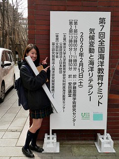 2月15日 (土)、東京大学本郷キャンパスにて「第7回全国海洋教育サミット」が開催され、英語科3年生の前田 鈴さん(3E1)が参加し、ポスター発表を行いました。