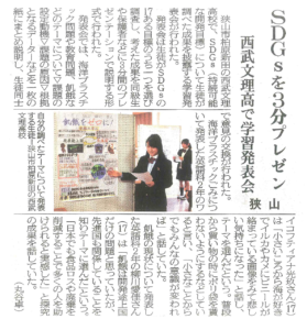 Warning: Use of undefined constant ENV - assumed 'ENV' (this will throw an Error in a future version of PHP) in /home/bunris/bunris.xbiz.jp/public_html/wp-content/themes/seibu-bunri/assets/parts/header/_head.php on line 10 埼玉新聞にSDGs成果発表会が掲載されました | 西武学園文理中学・高等学校
