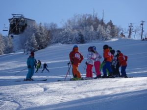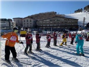 スキー教室では、初心者から上級者までレベル別に班を編成し、各自の技術に合わせて講習を受けます。
