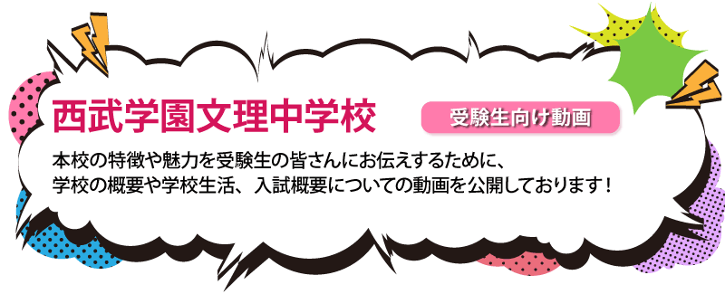 Warning: Use of undefined constant ENV - assumed 'ENV' (this will throw an Error in a future version of PHP) in /home/bunris/bunris.xbiz.jp/public_html/wp-content/themes/seibu-bunri/assets/parts/header/_head.php on line 10 【中学校】受験生向け動画公開中! | 西武学園文理中学・高等学校