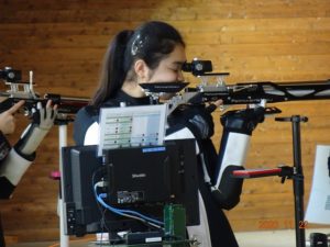 ライバルの他校選手と、59発目まで勝敗がつかず、最終の1発の勝負という熾烈な戦いとなりました。昨年度、大会新記録で優勝の本校の竹内 ひまりさんが獲得した優勝杯を、再び本校に持ち帰りたいという一念が実り、合計点で0.1点ライバルを上回り、辛くも勝利。本校に2年連続の優勝をもたらしました。この結果により、嘉部選手は「全国高等学校ライフル射撃競技選抜大会」への出場権を獲得しました。