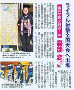 ライフル射撃部の活躍が市民新聞に掲載されました | 西武学園文理中学・高等学校