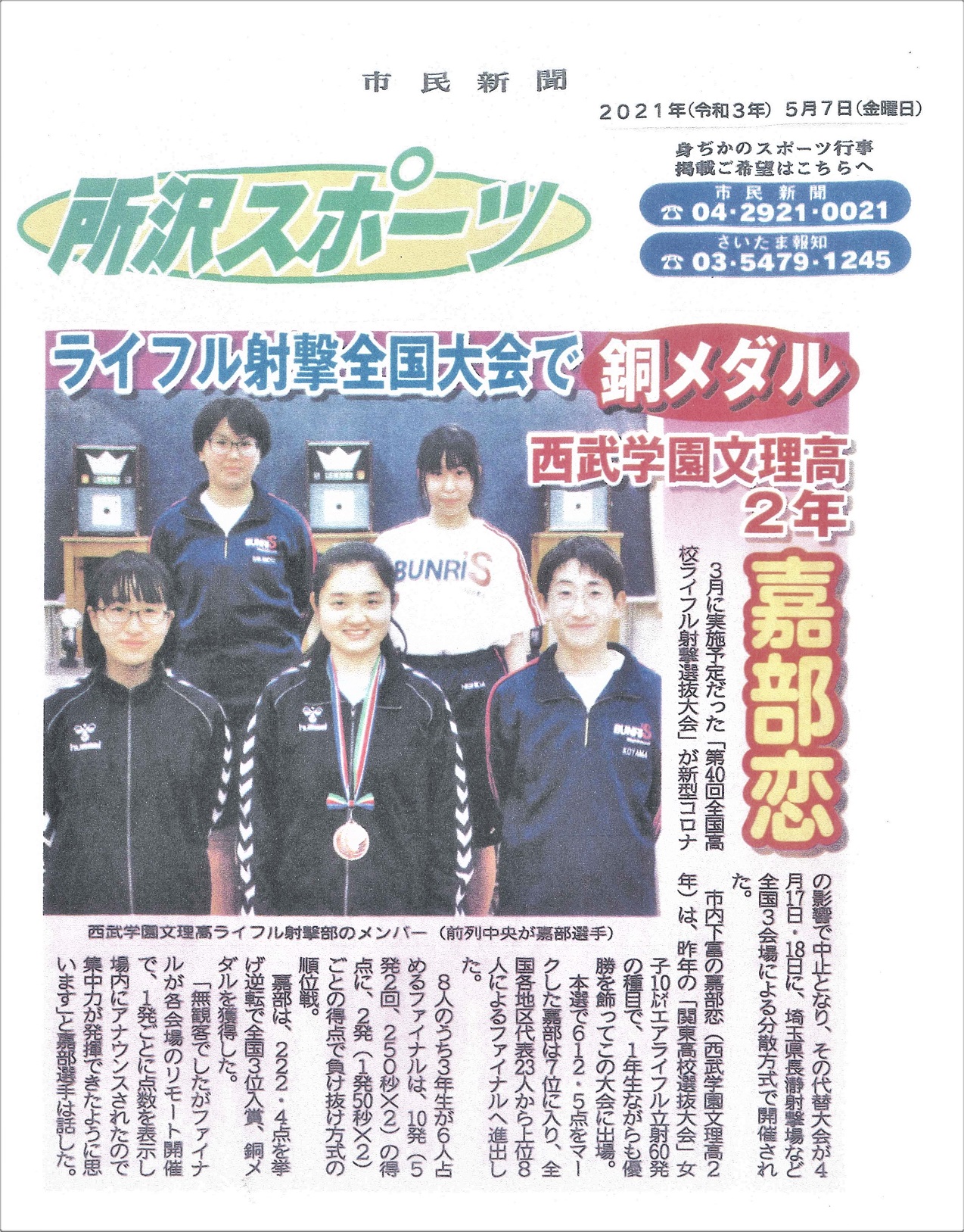 Warning: Use of undefined constant ENV - assumed 'ENV' (this will throw an Error in a future version of PHP) in /home/bunris/bunris.xbiz.jp/public_html/wp-content/themes/seibu-bunri/assets/parts/header/_head.php on line 10 【ライフル射撃部】所沢市の市民新聞に掲載されました | 西武学園文理中学・高等学校