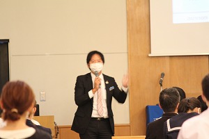 学校説明会では、本校のビジョンや教育内容、普段の学校生活の様子などについて、本校教員だけでなく在校生も登壇し、お伝えさせていただきました。