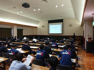 埼玉医科大学医学部の柴崎智美先生にご登場いただき、地域医療の現状と未来について、オンラインでお話いただきました。BSホールには60人近い生徒が集まり、熱心に耳を傾けていました。