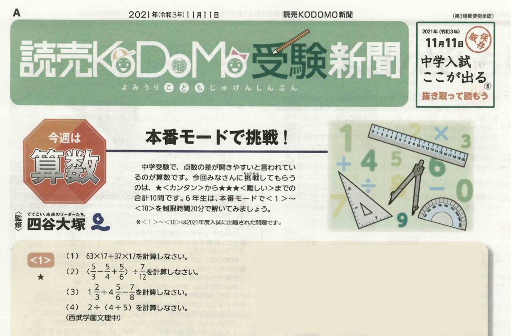 Warning: Use of undefined constant ENV - assumed 'ENV' (this will throw an Error in a future version of PHP) in /home/bunris/bunris.xbiz.jp/public_html/wp-content/themes/seibu-bunri/assets/parts/header/_head.php on line 10 読売KODOMO新聞で文理中学の入試問題が紹介されました | 西武学園文理中学・高等学校