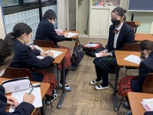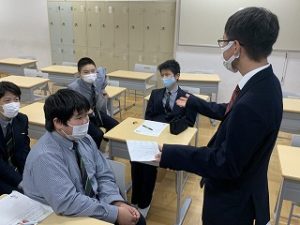 11月22日(月)7限に行われた中学1年生の特別活動に、昨春、中学を卒業した高校1年生がゲストとして招かれました。