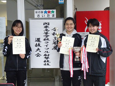 11月20、21日の両日、埼玉県長瀞町にて「令和3年度関東高等学校ライフル射撃競技選抜大会」が開催されました。本校からは3名がエントリーし、ビームライフル60発競技女子で坂本蒼良さん(1-S1)が8位入賞、10mエアライフル立射60発競技(女子)で橋本心優さん(2-B4)が5位入賞、嘉部恋さん(2-B3)が同競技で優勝しました。