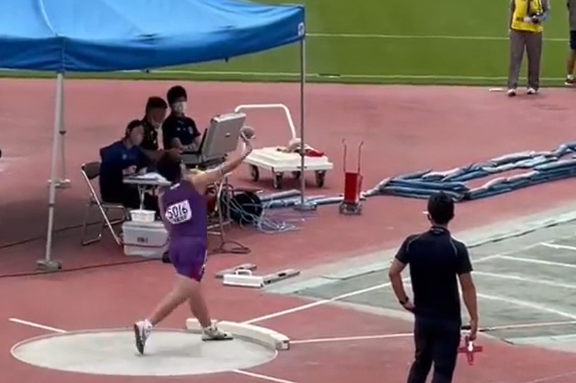 | 最終6投目で5位へ上昇し、関東出場を決めた 男子砲丸投(平岡さん) |