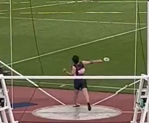 最終6投目で2位へ上昇し、準優勝の 女子円盤投(佐藤さん) |