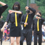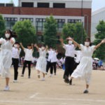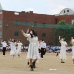 高校3年生の保護者120名が見守る中、生徒たちは力いっぱい走り、踊り、声を上げ、体育祭を思いきり楽しみました。途中、小雨に見舞われたものの、プログラムはすべて行うことができました。