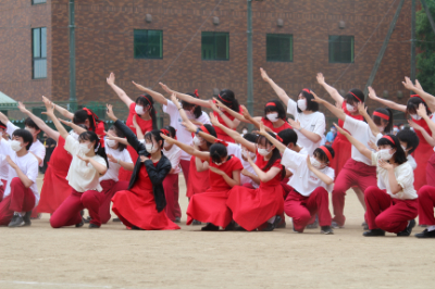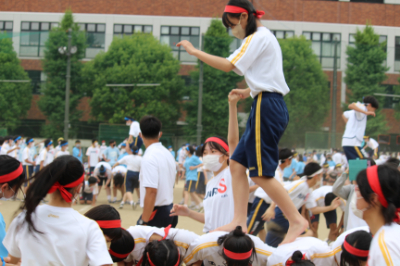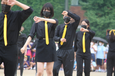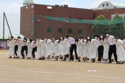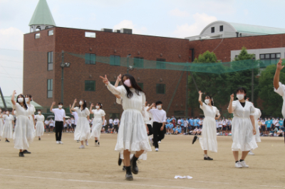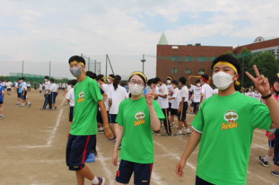 高校3年生の保護者120名が見守る中、生徒たちは力いっぱい走り、踊り、声を上げ、体育祭を思いきり楽しみました。途中、小雨に見舞われたものの、プログラムはすべて行うことができました。
