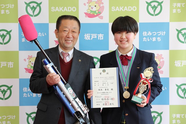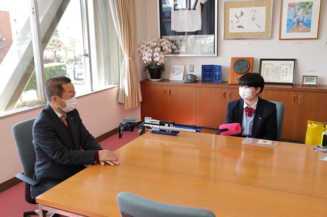 その結果を受けて、4月4日に坂戸市役所に表敬訪問し、市長に報告しました。市長からは活躍した成果に対して温かな言葉を頂戴いたしました。