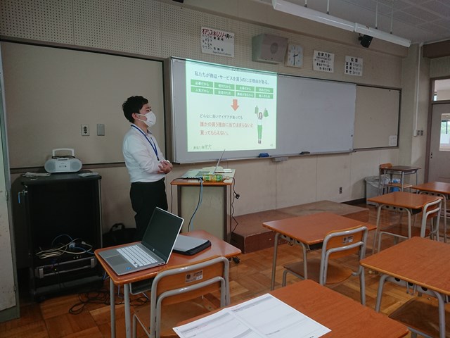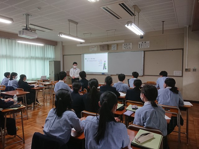 お招きしたのは、日本政策金融公庫・北関東信越創業支援センターの手塚侑真さん。「ビジネスとは?課題を探そう!」と題された講演&ワークショップは、日本政策金融公庫が主催する「高校生ビジネスプラン・グランプリ」への第一歩。このコンテストへの出場をめざして準備する中で、ビジネスの知見を深め、