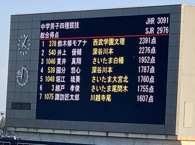 男子四種競技、県チャンピオン! (2391点は全国ランキング2位(中学1・2年)) |