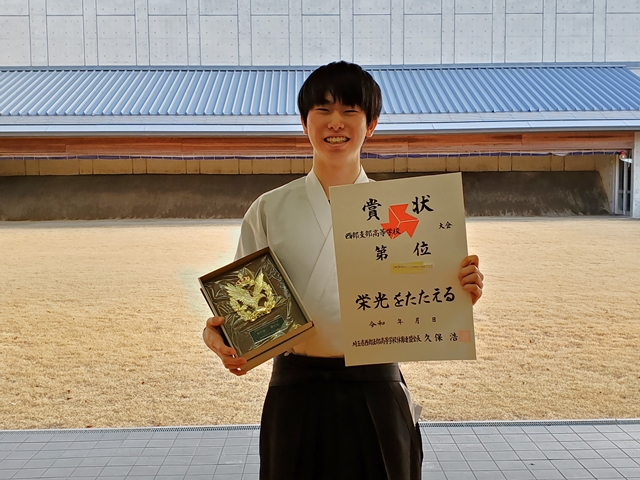 2月3日(土)、日高市文化体育館日高アリーナ弓道場にて行われた西部地区弓道大会において、男子個人の部(参加者232名)に出場した田村虎太郎さん(2-S1)が、8射7中で第2位の成績をおさめました。