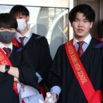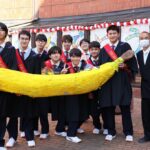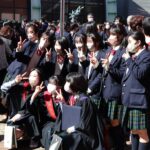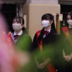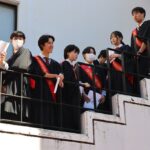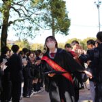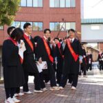 卒業式が終わると、1、2年生のクラブ員が花道をつくって卒業生を迎えました。ところどころで笑い声と泣き声が入り交じる中、風が卒業生の背中を、前へ前へと押し進めるかのように、少し強く吹いていました。
