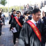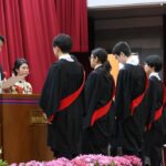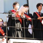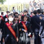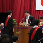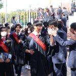 卒業式では、4年ぶりに、校長の手ずから卒業証書が全員に手渡されました。マルケス校長は1人1人に深々と頭を下げ、時折涙声になりながら「おめでとうございます」「応援しています」と声をかけていました。力強く交わされる握手は、コロナ禍の終焉を象徴するかのようでした。