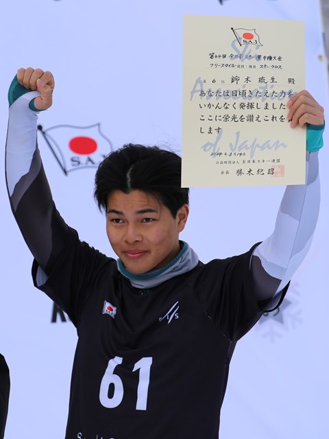 「この度、全日本スキー選手権スキークロスにて6位入賞することができました。今回のレースは、連戦続きのとてもタフなレースでしたがしっかりと体も動き、滑りも良くなり、自分のベストを出せたと思います。去年の10位から順位を上げられたので安心しました。これからシーズン後半に入りますが、より一層気を引き締めてスキーを楽しみながらベストを尽くしていきますので、応援よろしくお願いします。」