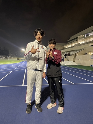 また、三輪さんの文理中高時代のクラスメイトには、陸上部OBの菅野雄太さん(早稲田大4年)がおり、彼は2023年・2024年と箱根駅伝で10区を走った選手です。2人は今年4月におこなわれた『東京六大学対抗陸上競技大会』で会い、お互いに大学ラストイヤーである今年の健闘を誓い合ったようです。三輪さん・菅野さん、今後も活躍を期待しています!!