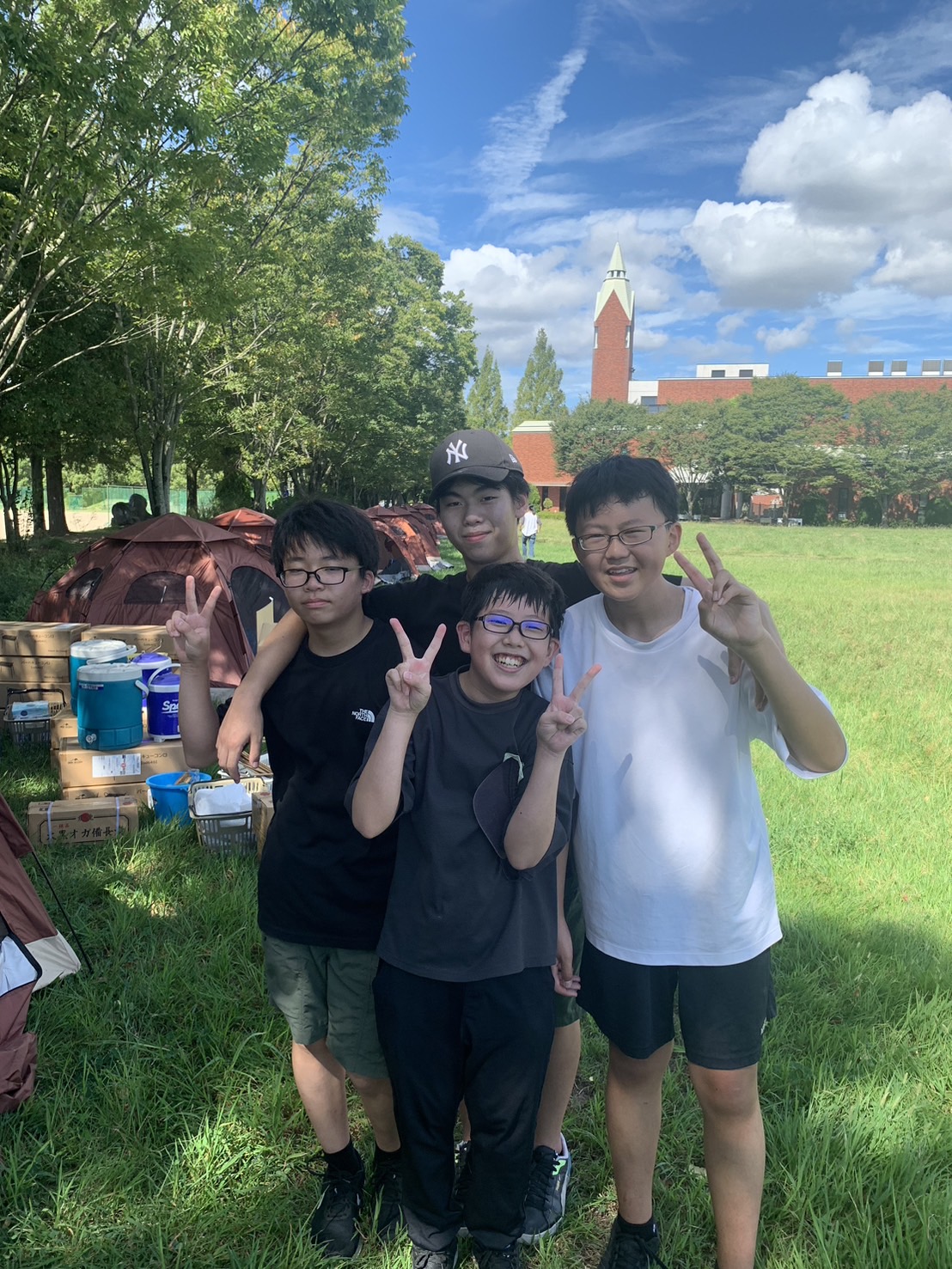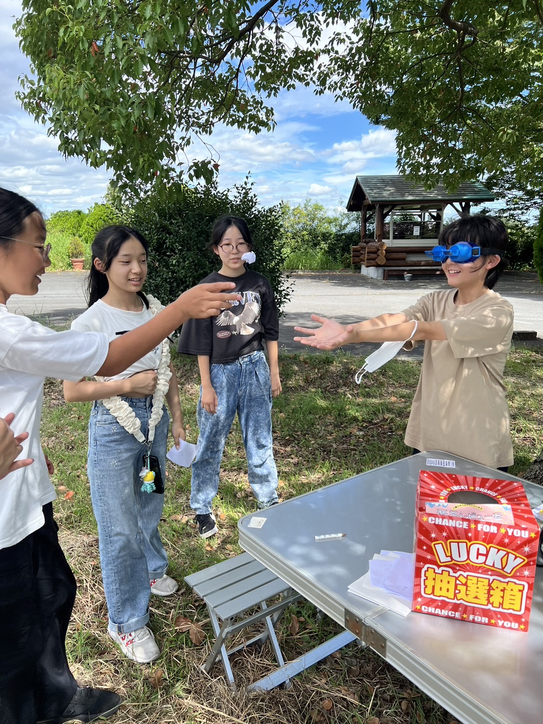 徒たちは午前9時に到着し、キャンプの準備をしました。日中は、小グループに分かれて英語の課題にチャレンジしました。