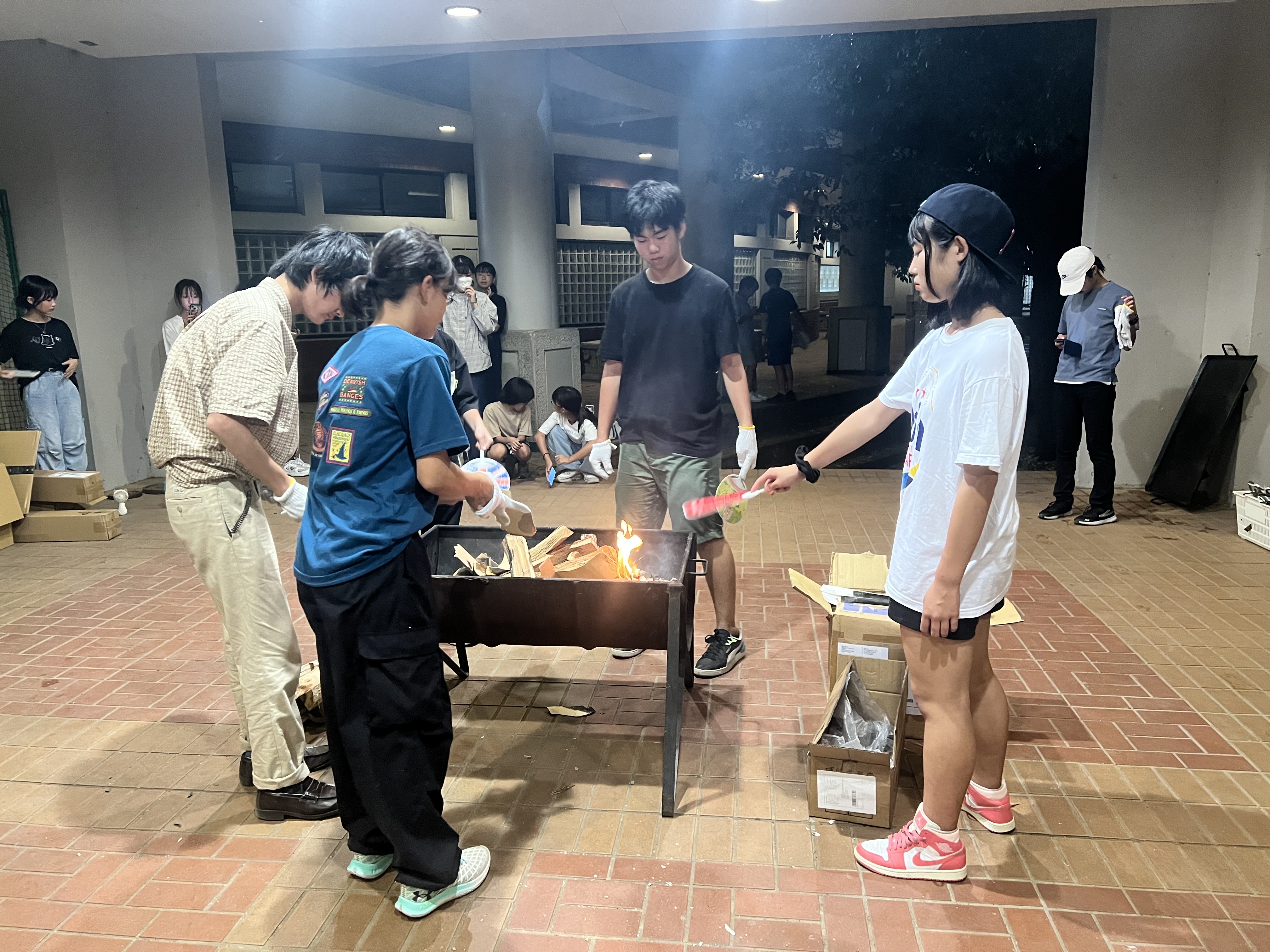 夜になると、生徒たちはグループごとにバーベキュー用の火を準備しました。
