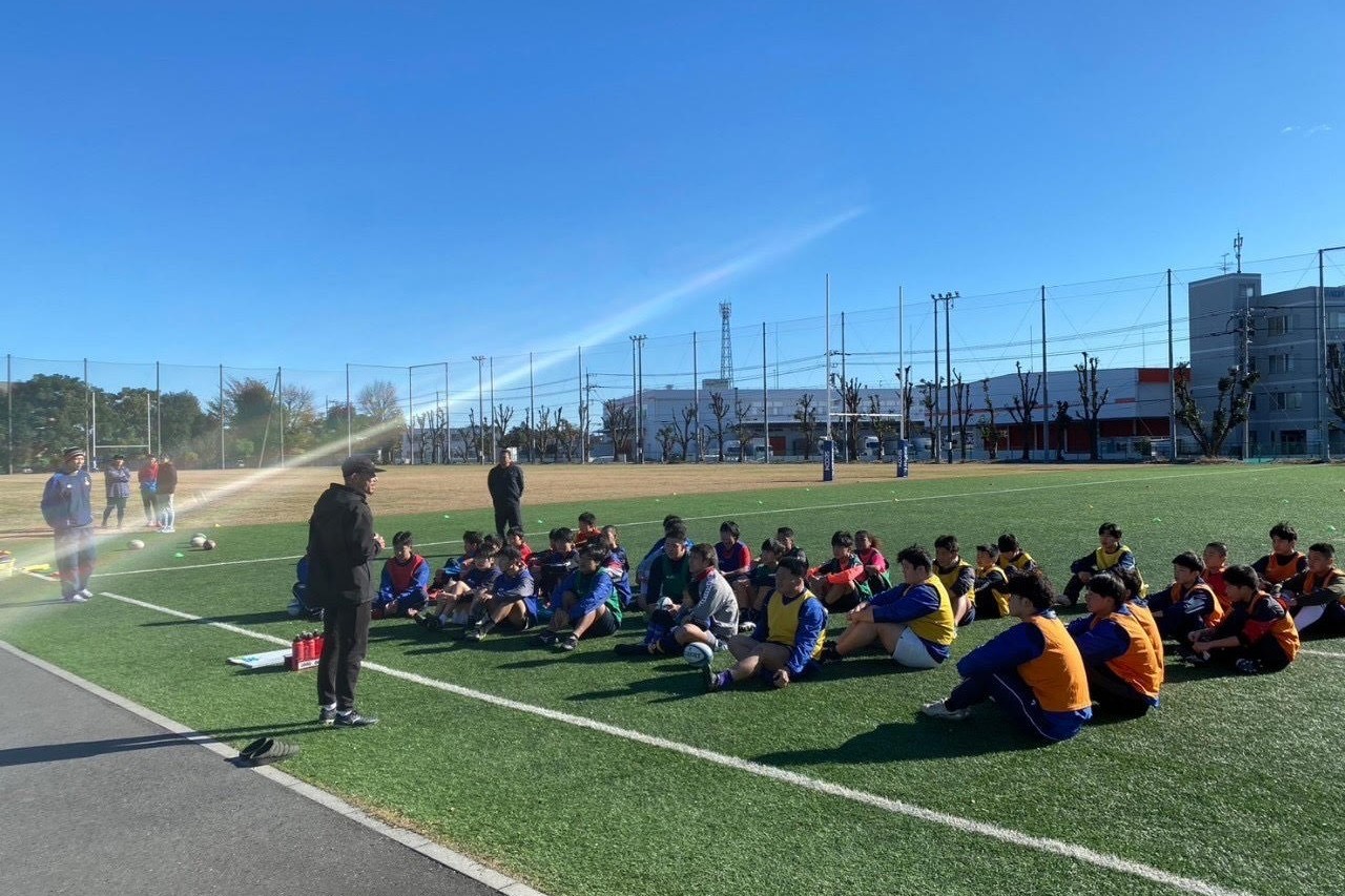 12月7日にセコムラグビーフィールド(埼玉県狭山市柏原)にて開催された『NTTジャパンラグビー リーグワン2024-25プレシーズンマッチ』狭山セコムラガッツvs日野レッドドルフィンズの前座として行われました狭山セコムラガッツさん主催のラグビーイベントに参加してきました。セコムラガッツの選手による県内の中高生を対象にしたスキルアップと交流を目的としたイベントで、本校飯塚先生(JRFU A級コーチ)による全体のコーチングのもと実施されました。
