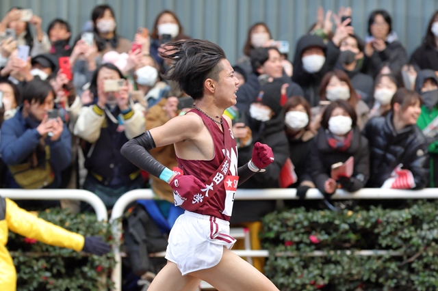 今回で3回連続の10区となる菅野君さんは、積極的で最後まで諦めない粘り強い走りで早稲田大学総合4位という成績に貢献。一歩も引かず、攻め続けた走りは20年振りに早稲田大学の10区区間記録を更新することとなりました。一般受験を経て早稲田大学教育学部に入学、4年間苦労をしながら勉強と競技を両立した菅野さんの圧巻の走りでした!