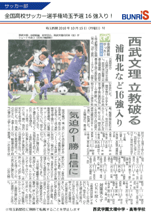 【サッカー部】全国高校サッカー選手権埼玉予選16強入り! | 西武学園文理中学・高等学校