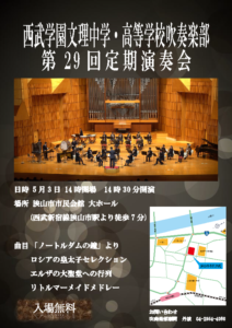 このたび、吹奏楽部が「第29回定期演奏会」を開催することとなりました。