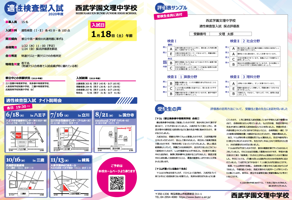 【予約受付開始】適性検査型入試 ナイト説明会 | 西武学園文理中学・高等学校