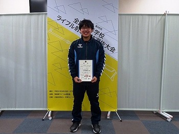 平成31年3月25日(月)~27日(水)に、宮城県石巻市にて「第38回全国高等学校ライフル射撃競技選抜大会」が行われ、エアライフル男子60発競技において小久保 雄太さん(3B2 文理中卒)が第8位に入賞しました。