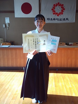 本大会に女子個人戦にて出場した、手塚 理子さん(1B2文理中卒)が予選から的中を続け、16射中15本を的に当てるという好成績を残し、みごと個人優勝を果たしました。