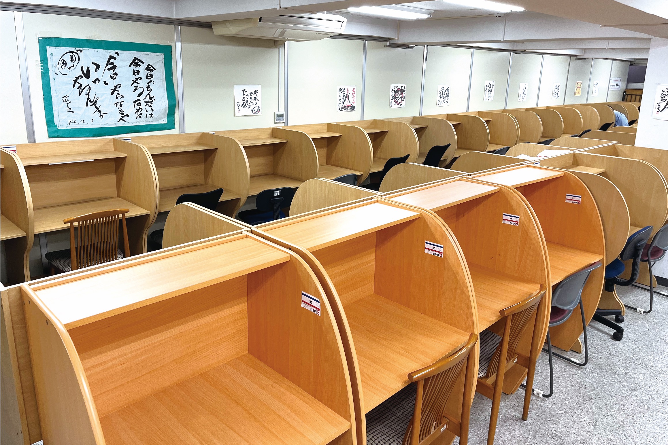 新狭山駅北口徒歩1分に位置し、22時まで学習スペースとして利用可能です。